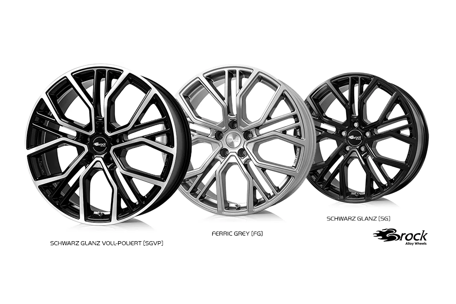 The new Brock B41 alloy wheel in Y-split design convinces with a dynamically separated spoke guidance. Changing spoke lengths are essential for the strong appearance and the implied concavity. The colour shades, Schwarz Glanz Voll-Poliert, Ferric Grey and Schwarz Glanz individualise the Brock B41 for the various vehicle models. In technically perfected processes, the light alloy wheel was built especially for vehicles such as the Audi Q-Series, Porsche Cayenne, Mercedes GLE and the BMW X-Series. The Brock B41 is planned in the sizes 8.5×19, 9.0X19, 8.5X20, 9.0X20, 10.5X20, 8.5X21, 9.5X21 for a wide range of vehicles including ECE or ABE. It was also tested for all installation possibilities of TPM systems and approved with a 100% coverage. The demands for the usual quality continue to meet the Brock standards with “5 years warranty*” and “100% Made in Europe”.